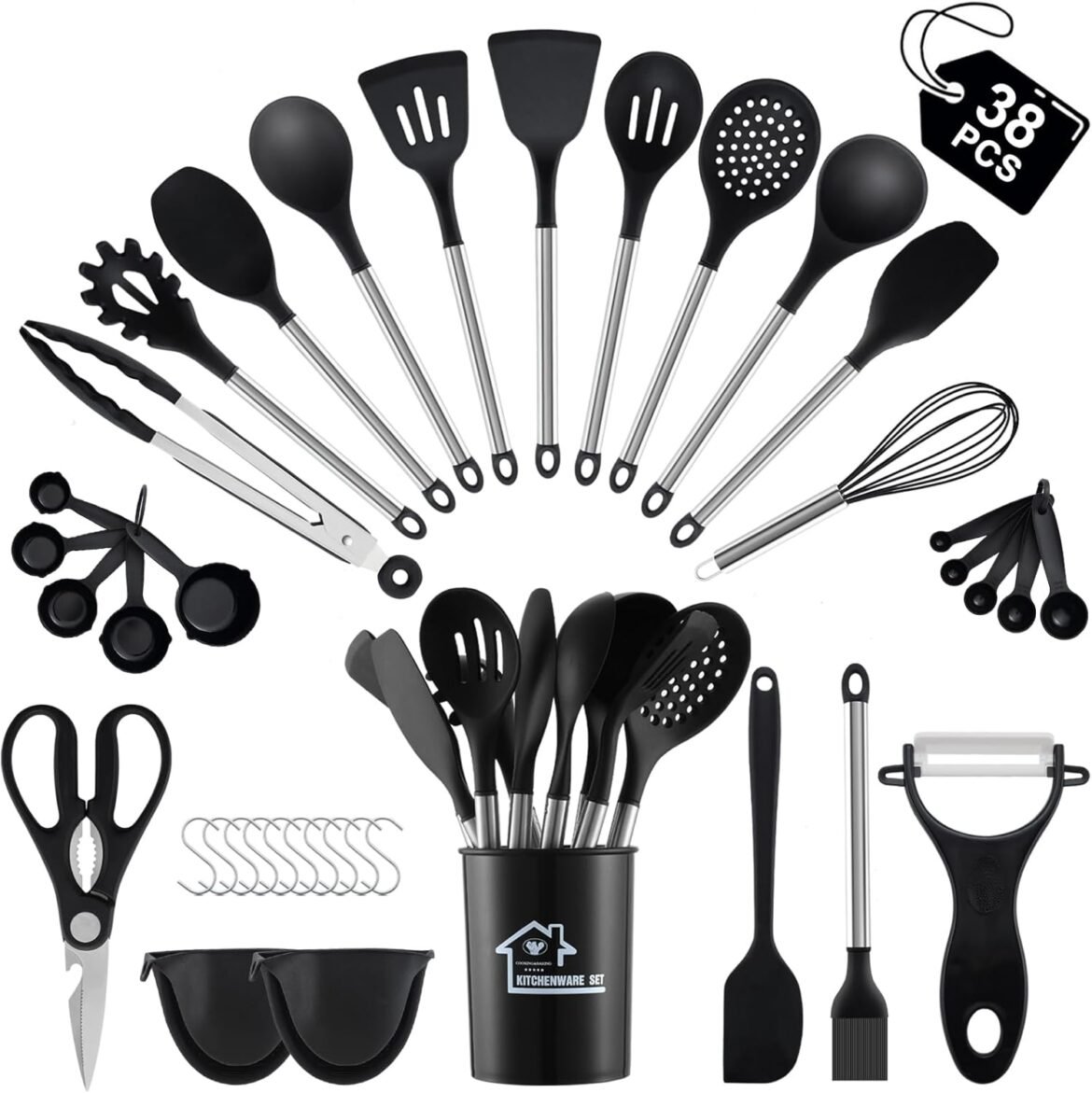 - 38-Piece Collection: From spatulas to measuring cups, this set includes everything you need for your kitchen endeavors. Each piece is designed for practicality, ensuring you have the right tool for every task.