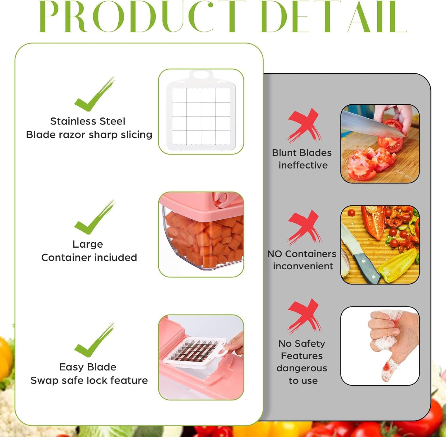 • Efficient Meal Prep: The 16-in-1 Vegetable Chopper allows you to chop, slice, and dice in a fraction of the time it would normally take.