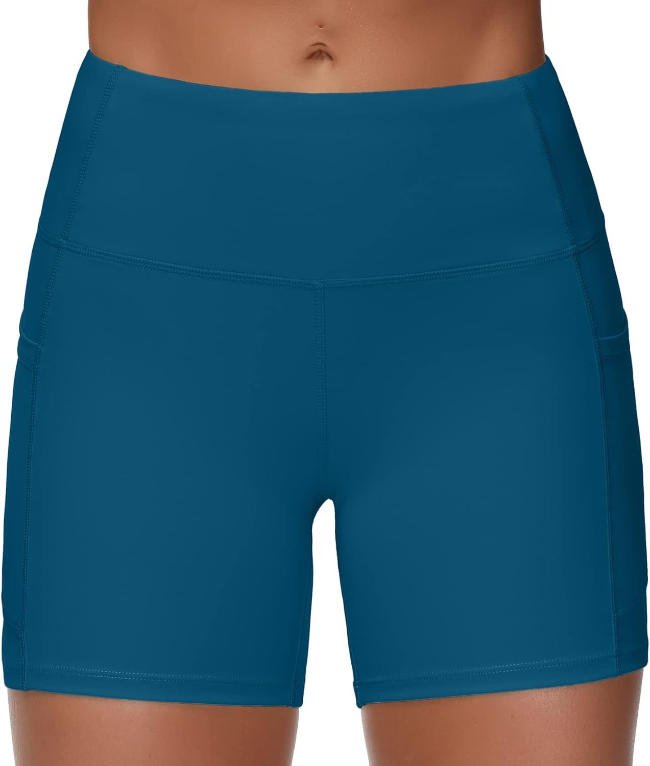 THE GYM PEOPLE High Waist Yoga Shorts for Women's Tummy Control Fitness Athletic Workout Running Shorts with Deep Pockets