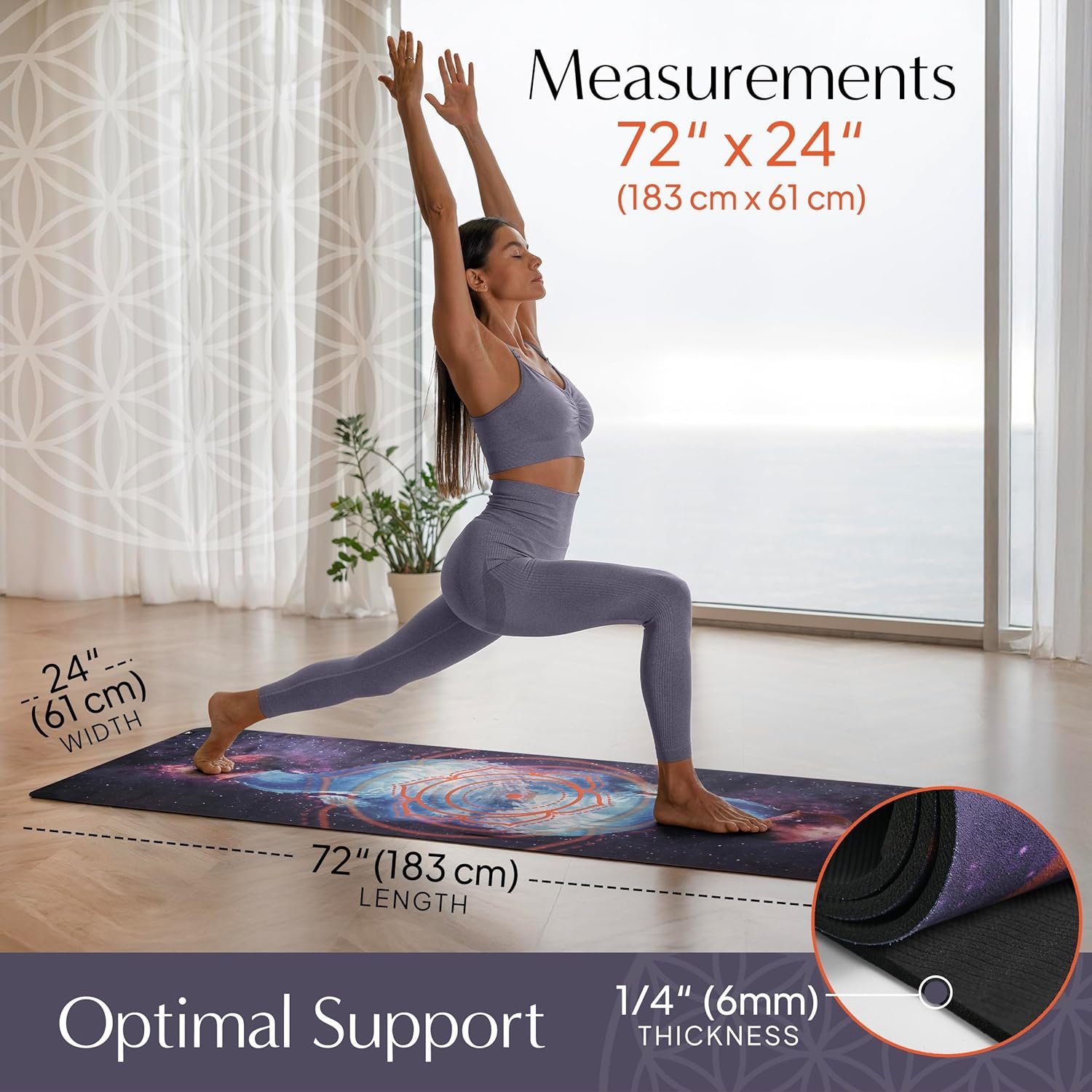 This mat is thoughtfully created for those who push themselves to new heights in their yoga practice while understanding the importance of self-care. It allows you to feel empowered while grounding your practice in relaxation and mindfulness.