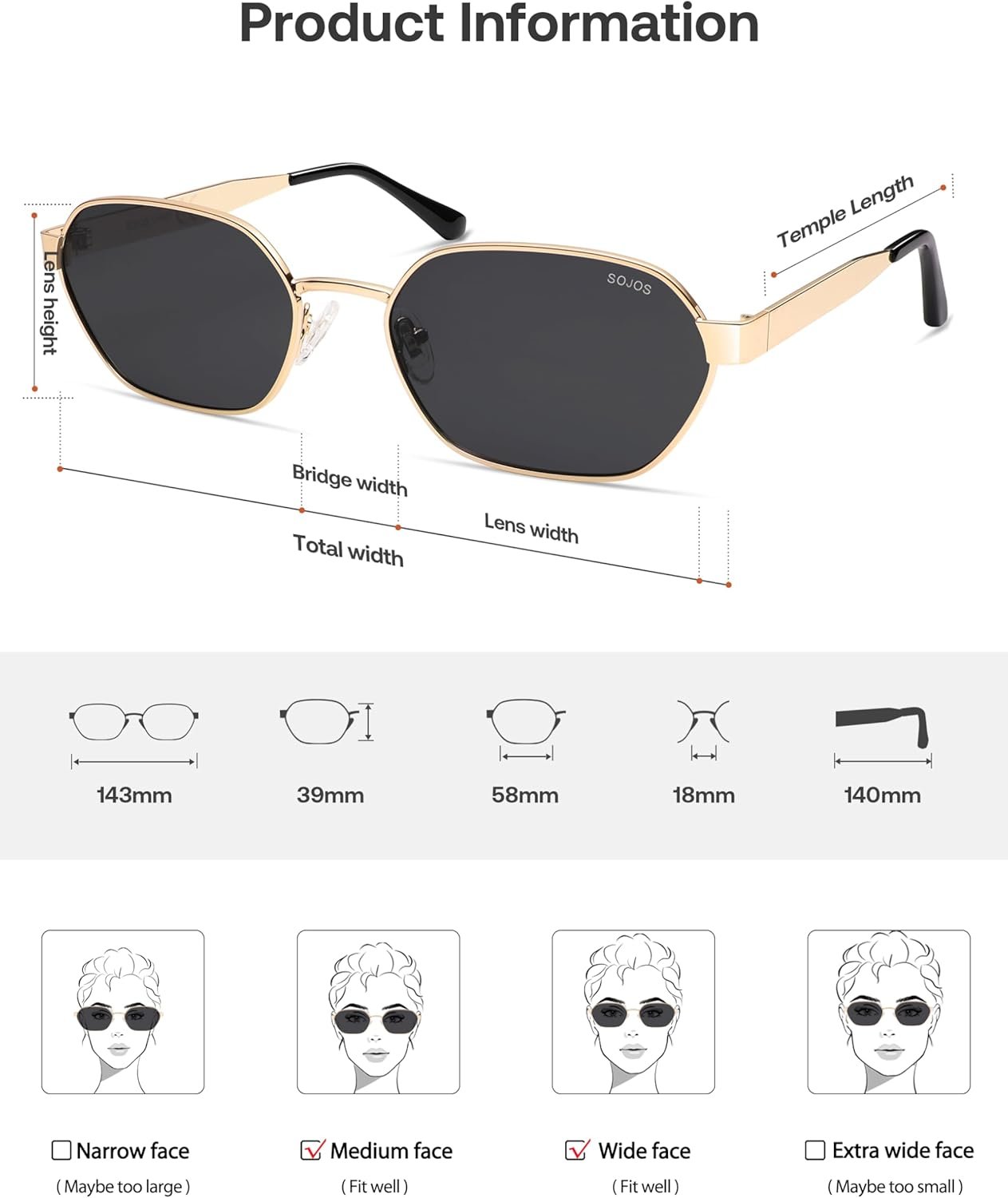 Trendy Style: The design of the SOJOS SJ1238 is tailored to complement various face shapes. Its hexagon frame emits a modern, trendy vibe that pairs effortlessly with any outfit, whether you’re dressing up for a formal event or going casual for a day out.