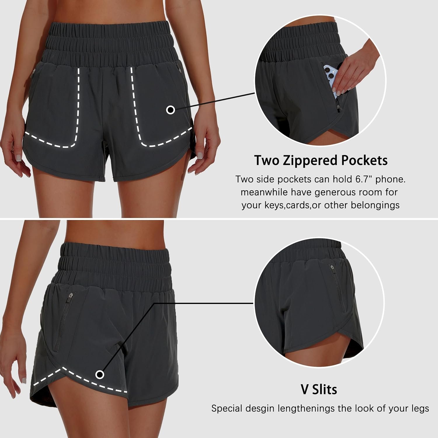The Women’s High Waisted Athletic Shorts come with a variety of features that set them apart from other options on the market: