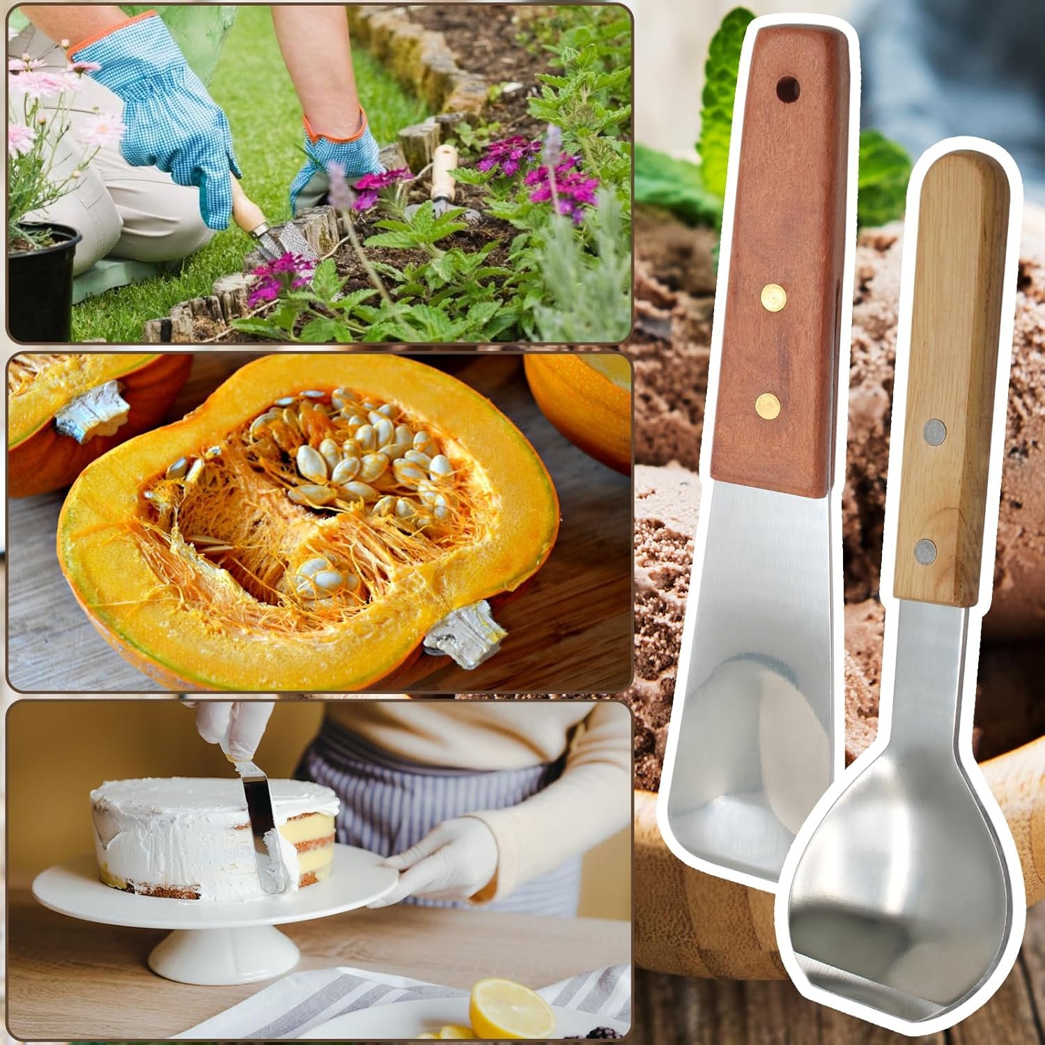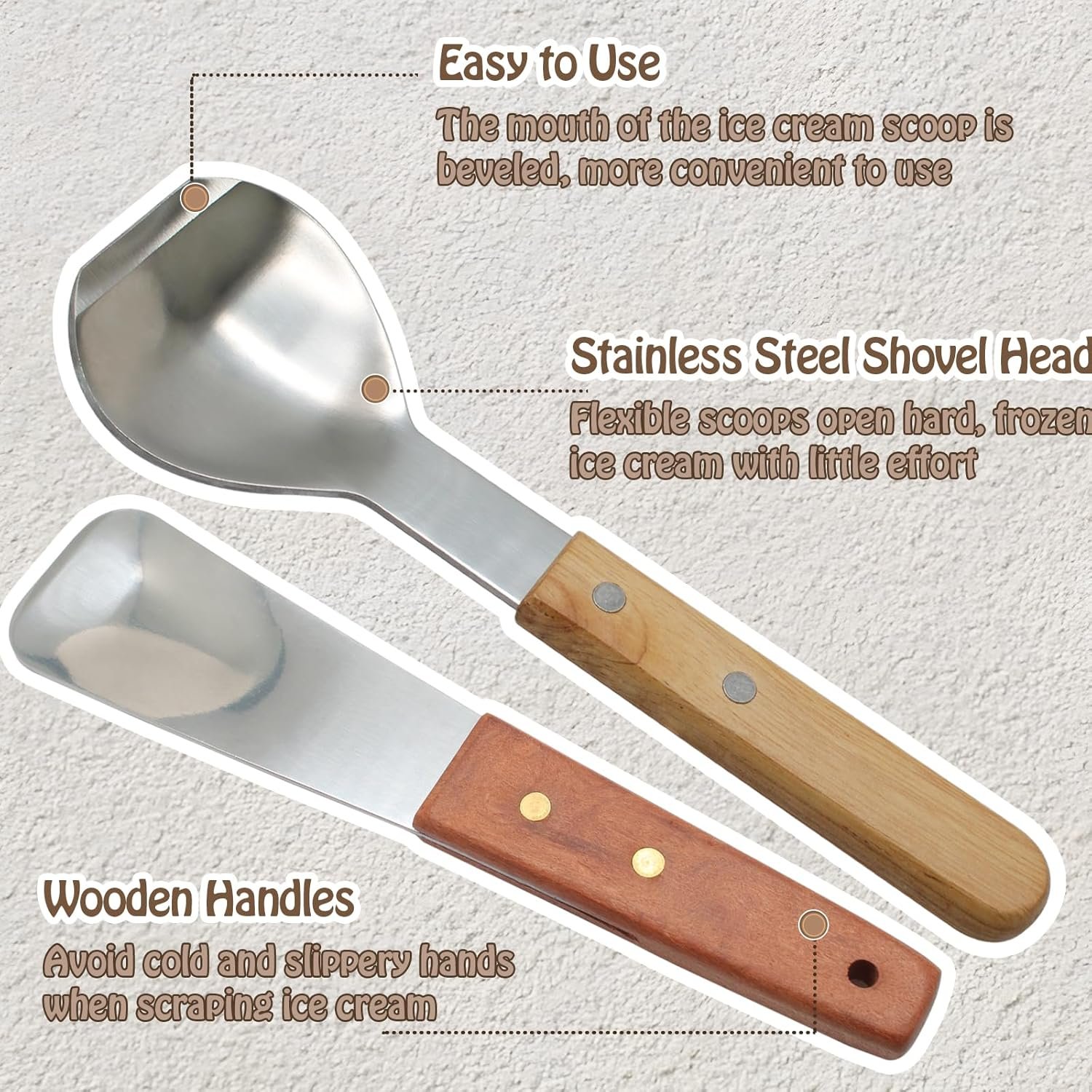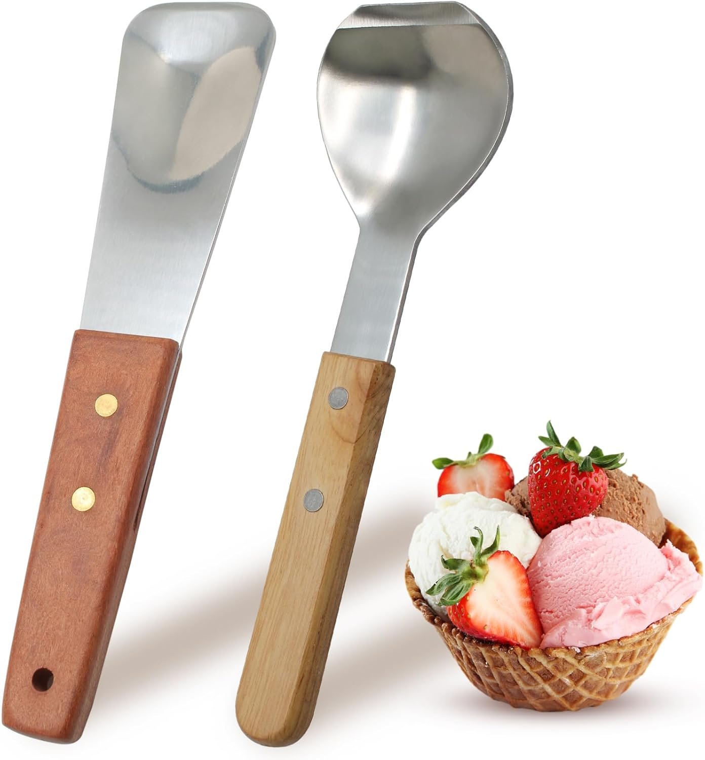 Essential 2-Pack Ice Cream Spade Set: Stainless Steel Scoops & Wooden Handles for Perfect Desserts