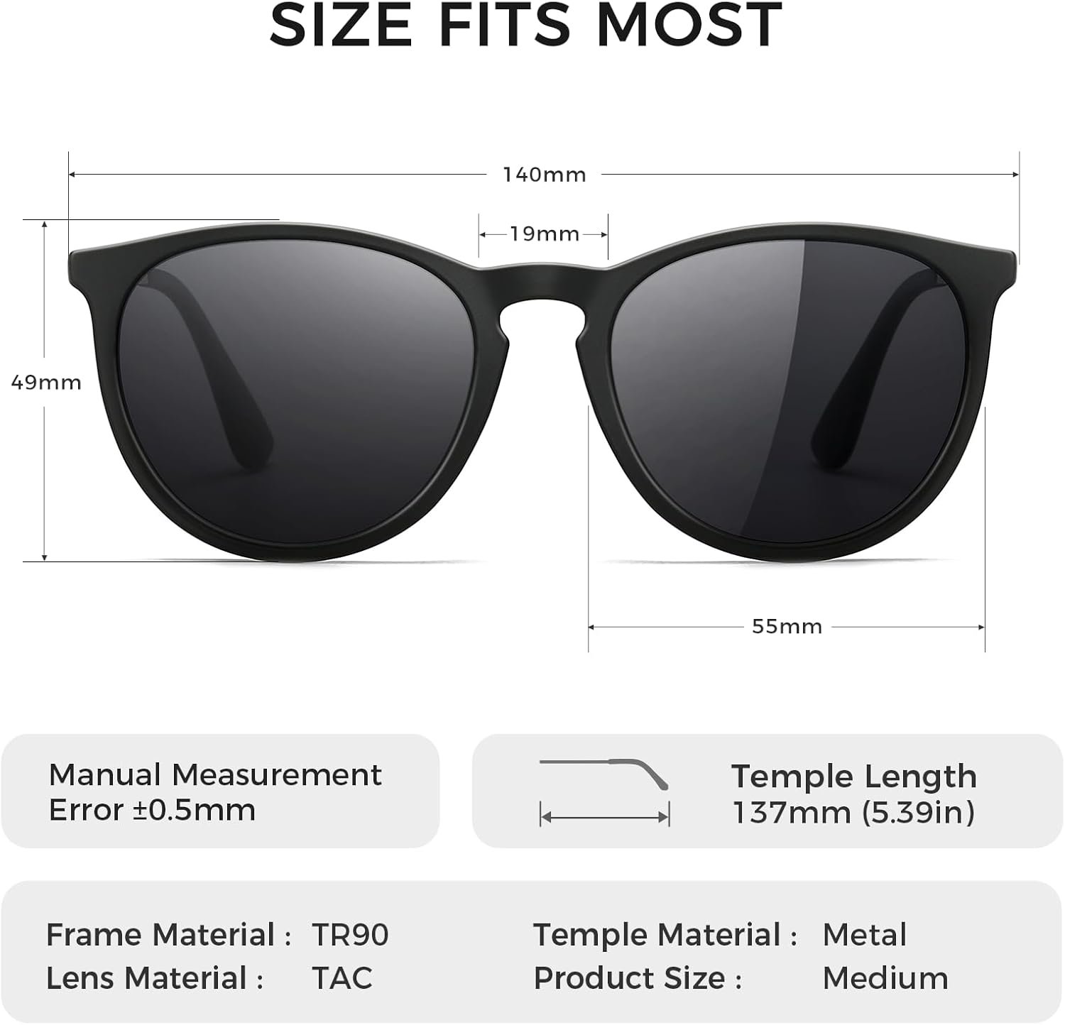 - Vintage Style: The round frames offer a classic vintage look that complements any outfit.