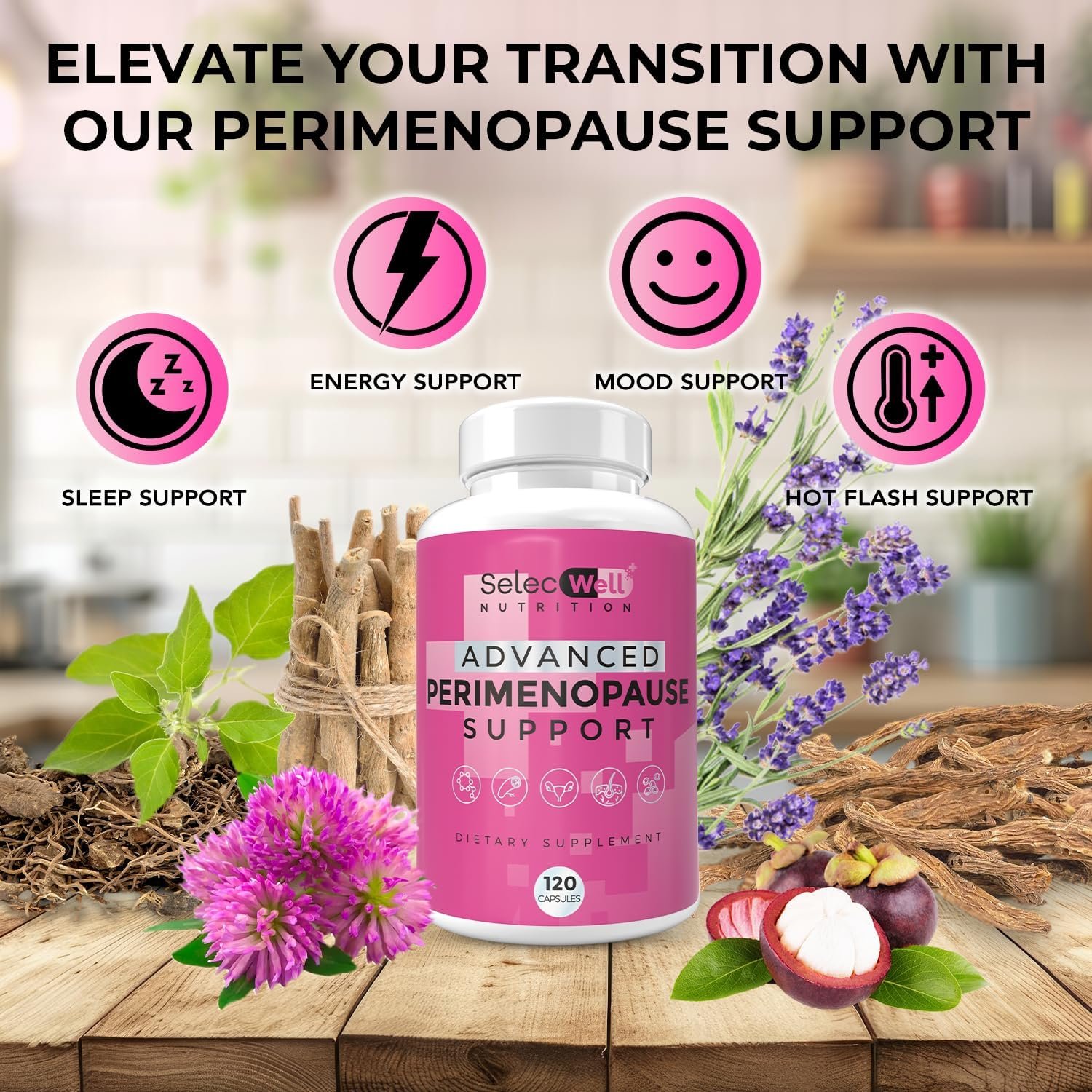 SelecWell has crafted a supplement that specifically addresses the symptoms associated with perimenopause. The formulation aims to assist with: