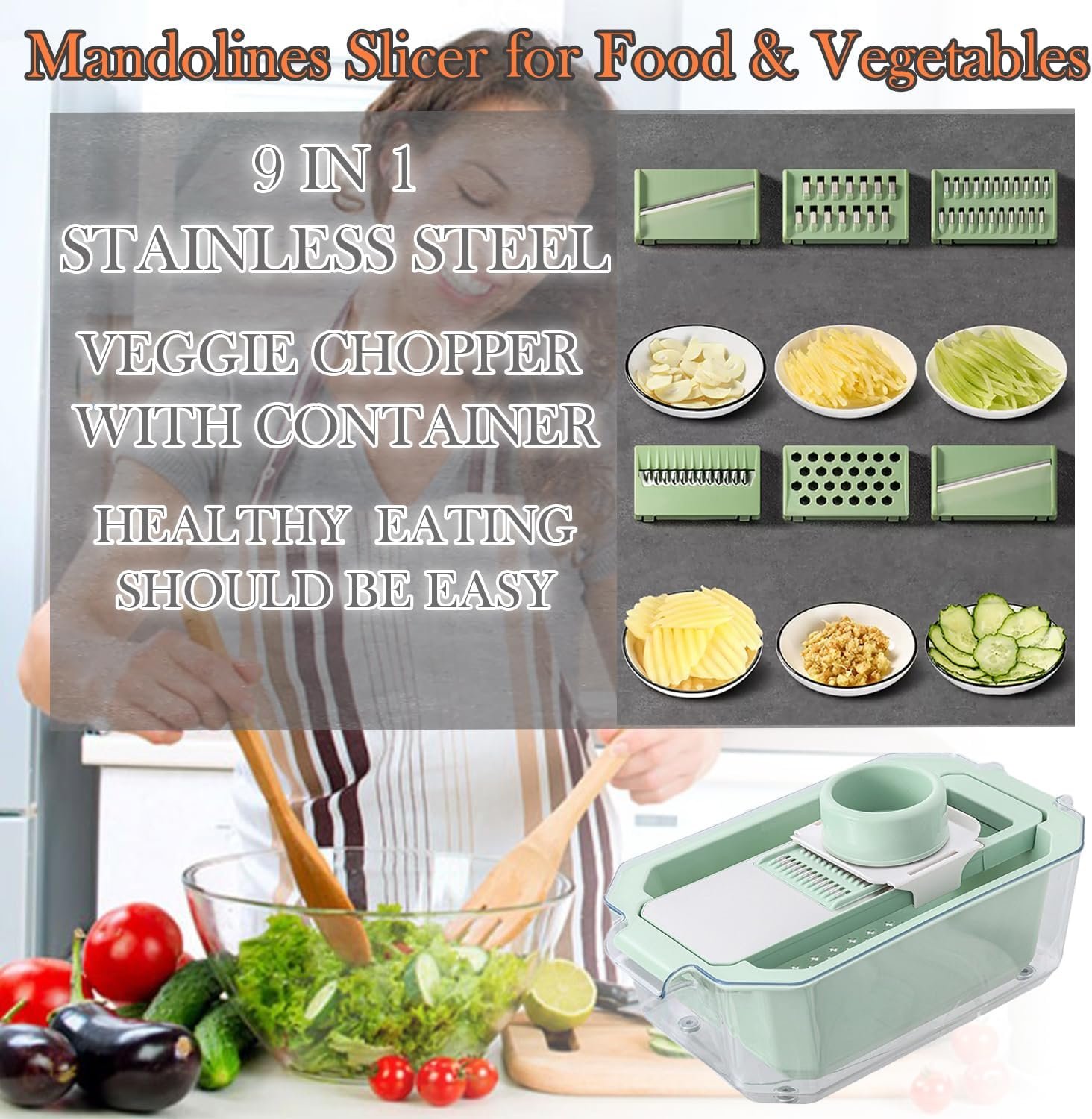 With its 9-in-1 functionality, this mandoline slicer allows you to: