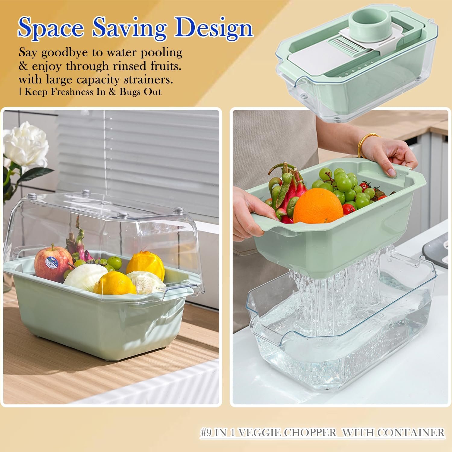 - "I love the built-in container. It keeps my kitchen tidy, and the filter keeps my veggies fresh!"