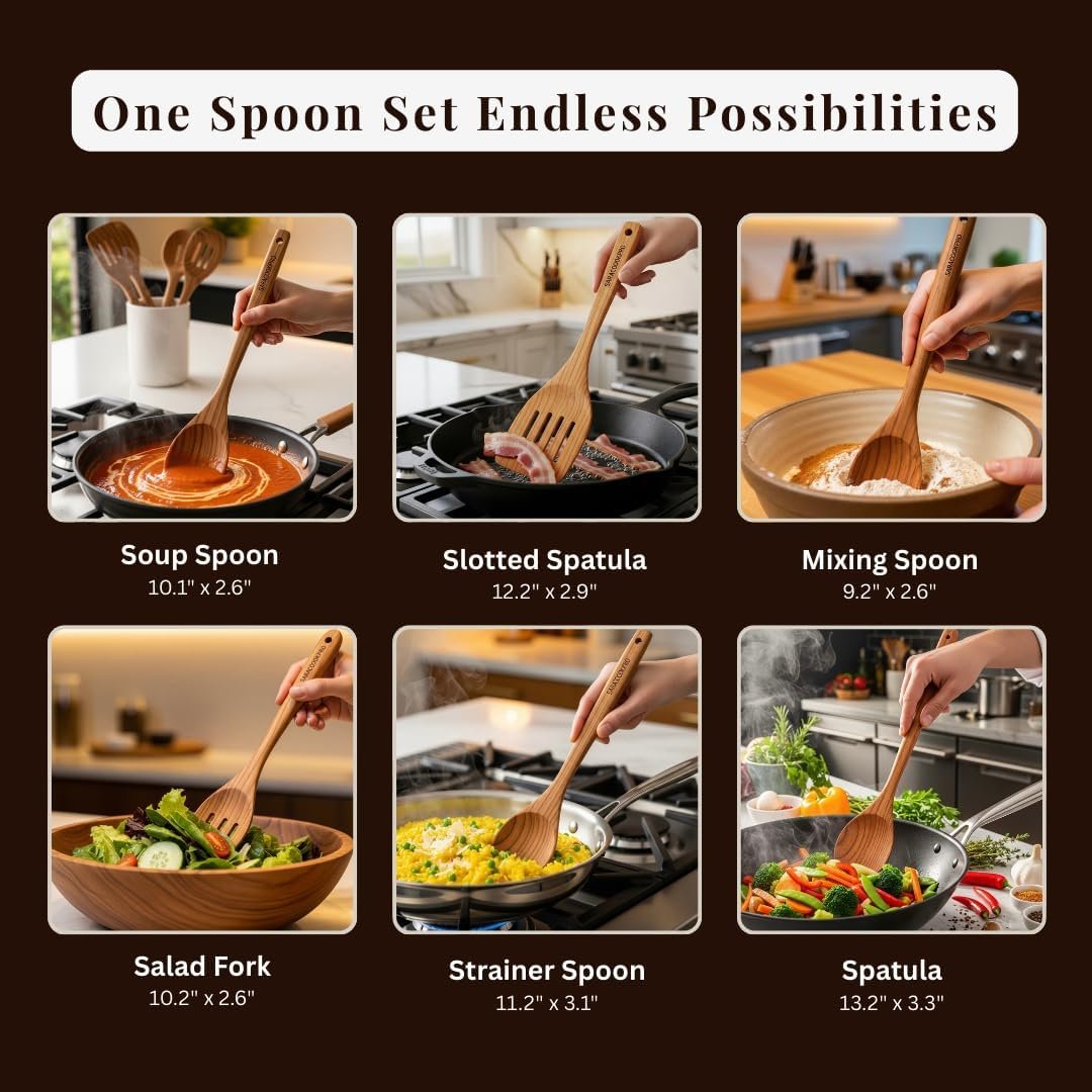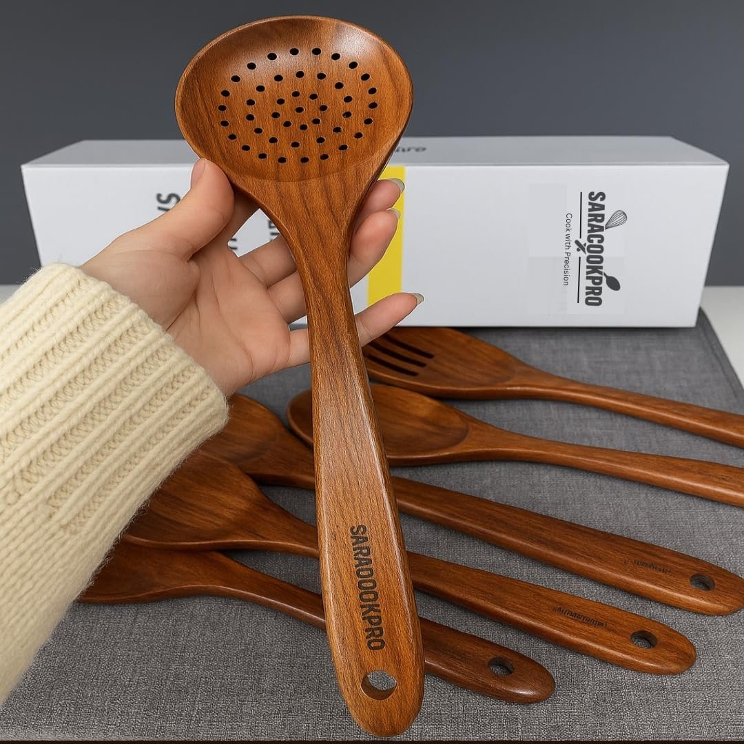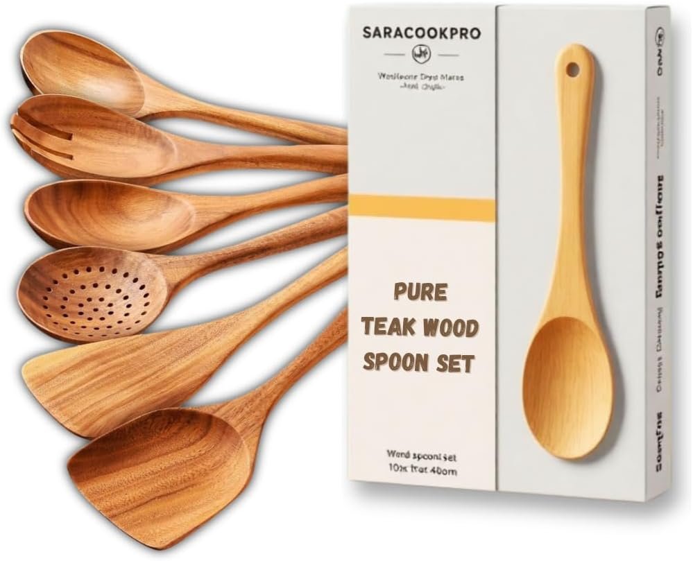 The Premium Teak Wooden Spoon Set is designed with the modern chef in mind. Here’s what makes this 6-piece collection a standout choice: