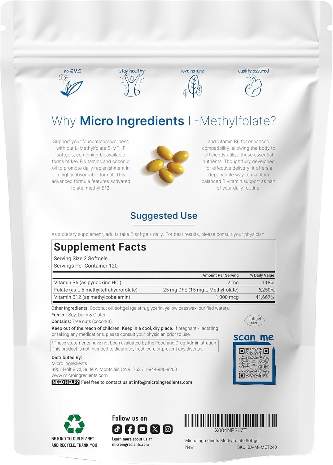 L-Methylfolate 5-MTHF softgels by Micro Ingredients are not just another supplement; they are a comprehensive solution for anyone looking to enhance their health through the power of B vitamins. With a blend of bioavailable forms and the added benefit of coconut oil for absorption, these softgels are an excellent choice for daily wellness support.