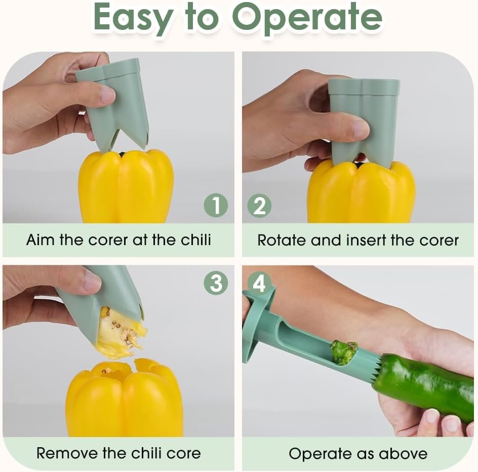 Using the Runsgo Red Bell Pepper Seed Corer is simple and straightforward. Follow these steps for the best results: