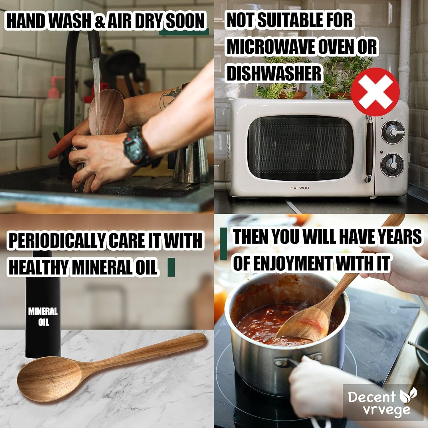 - One-Piece Construction: Each utensil is carved from a single piece of hardwood, which reduces the chances of deformation and enhances durability.
