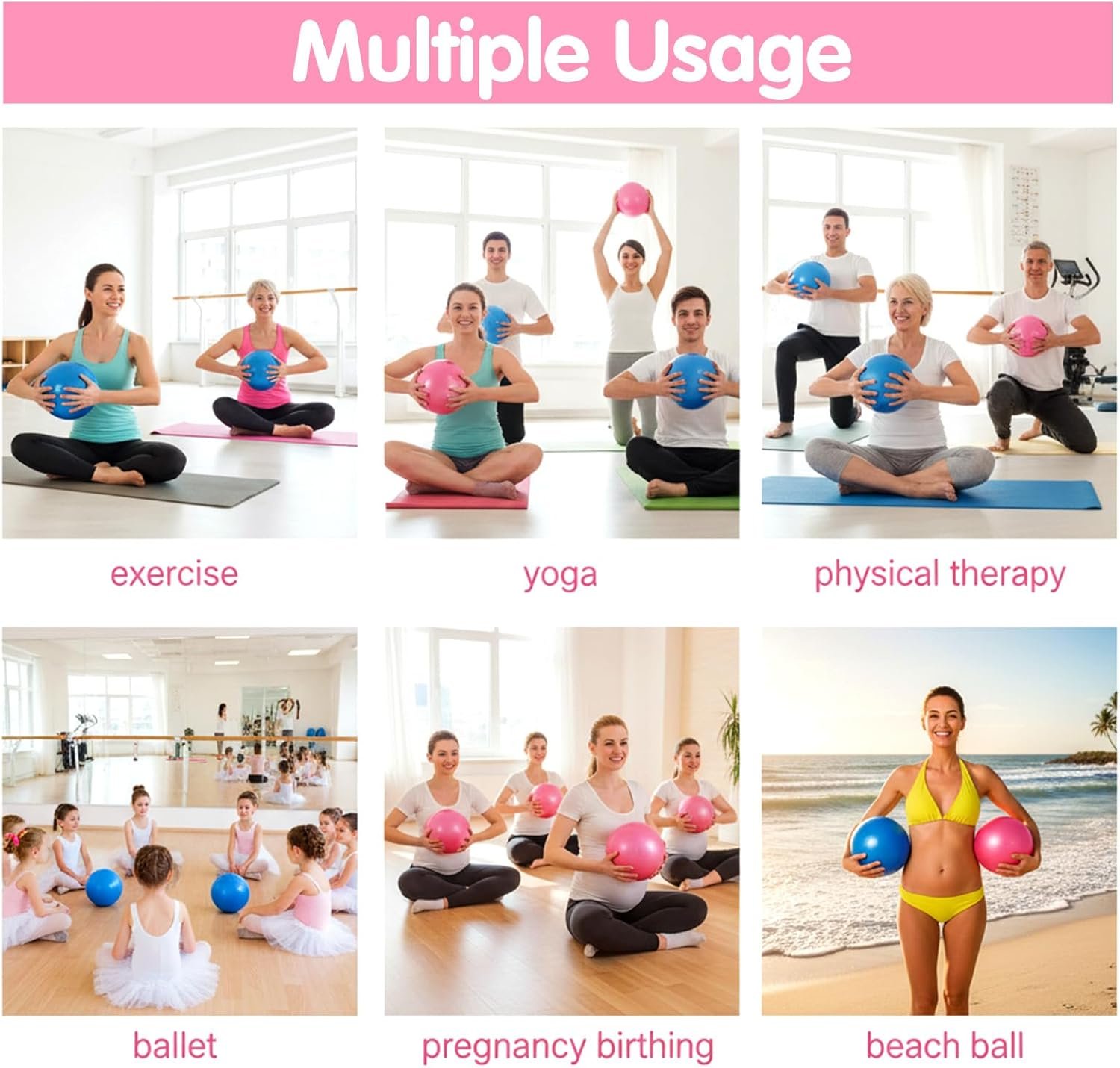 Grevosea Pilates Ball 9 Inch, 2 Pack Small Exercise Balls Workout Ball for Yoga Core Training Physical Therapy Stability Barre Stretchin Pink & Blue