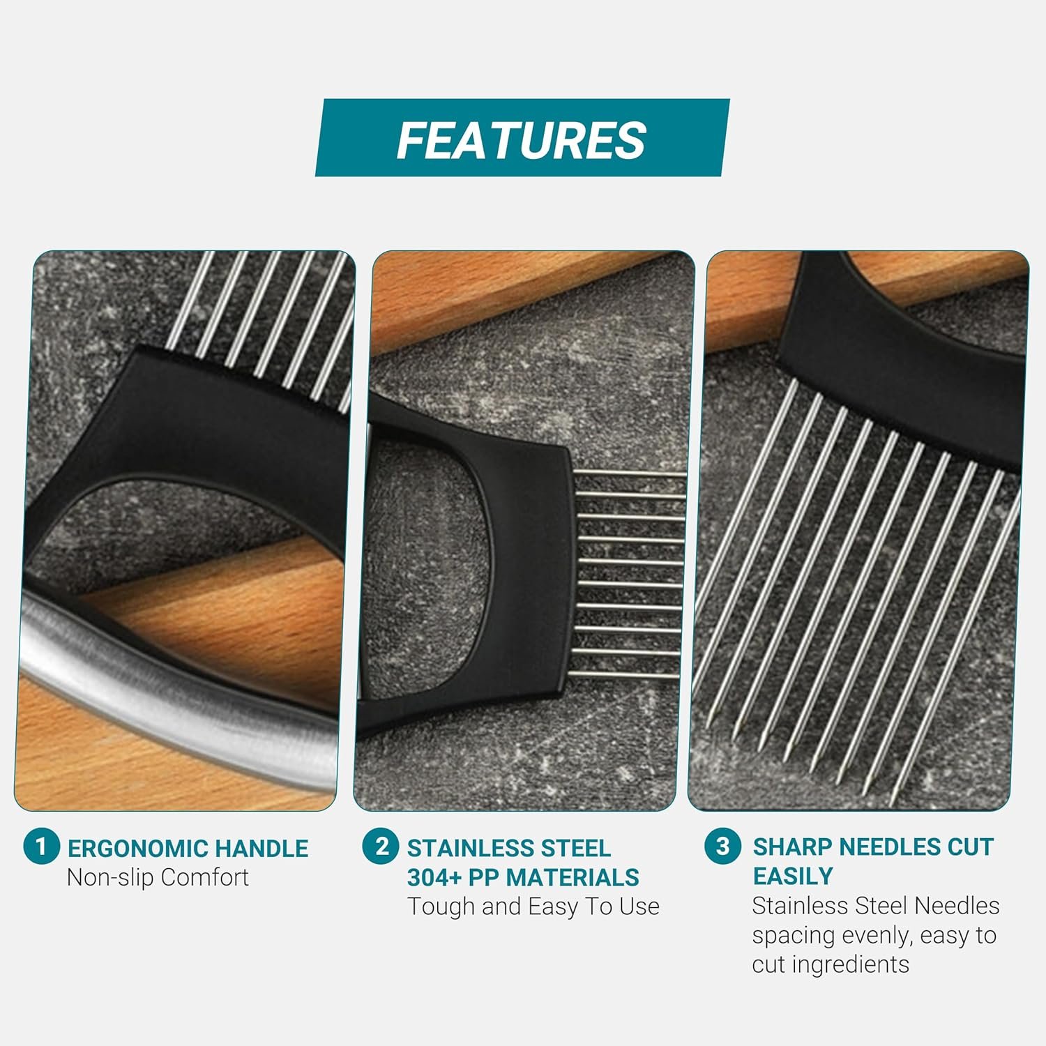 - Sharp Stainless Steel Pins: The pins hold the onion securely in place, preventing it from slipping during cutting.