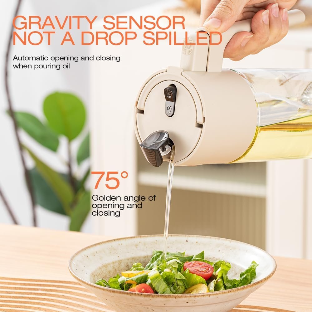 - When the cap lock is open, the oil bottle dispenses oil automatically when tilted at a 75° angle.