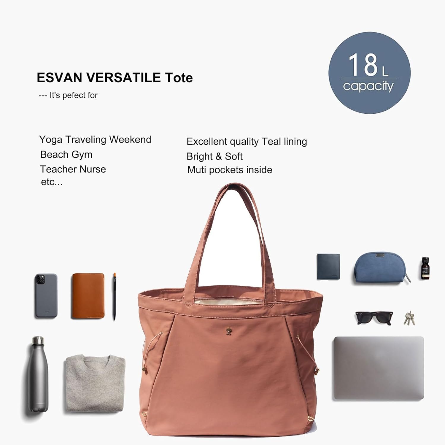 Versatile ESVAN Yoga Tote Bag: Perfect for Office, Workout, Travel, and Beach Adventures