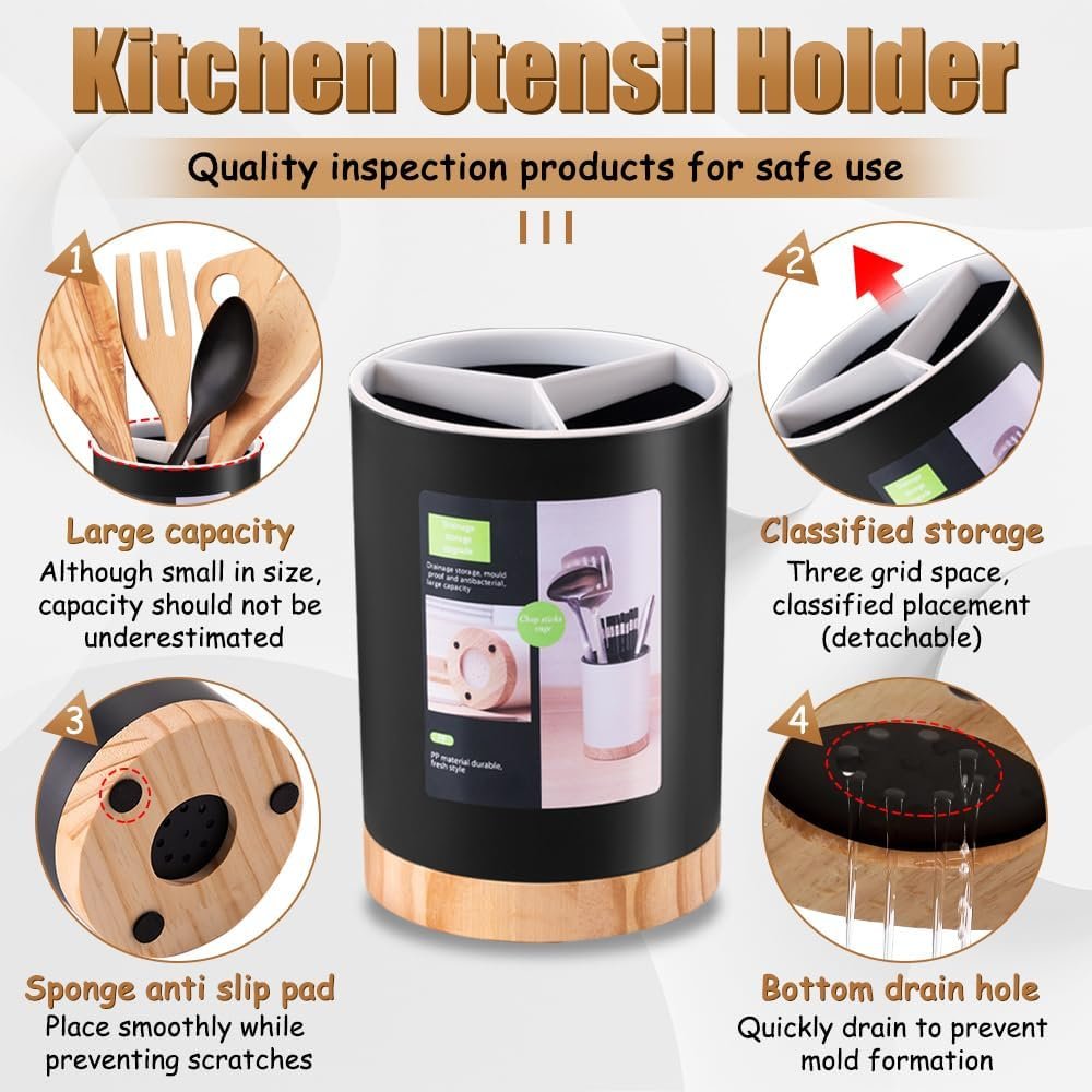In conclusion, if you’re tired of a cluttered kitchen and searching for a solution that combines functionality, safety, and style, our Kitchen Utensil Holder is the perfect choice. Its thoughtful design ensures that all your utensils are organized, easily accessible, and hygienic.