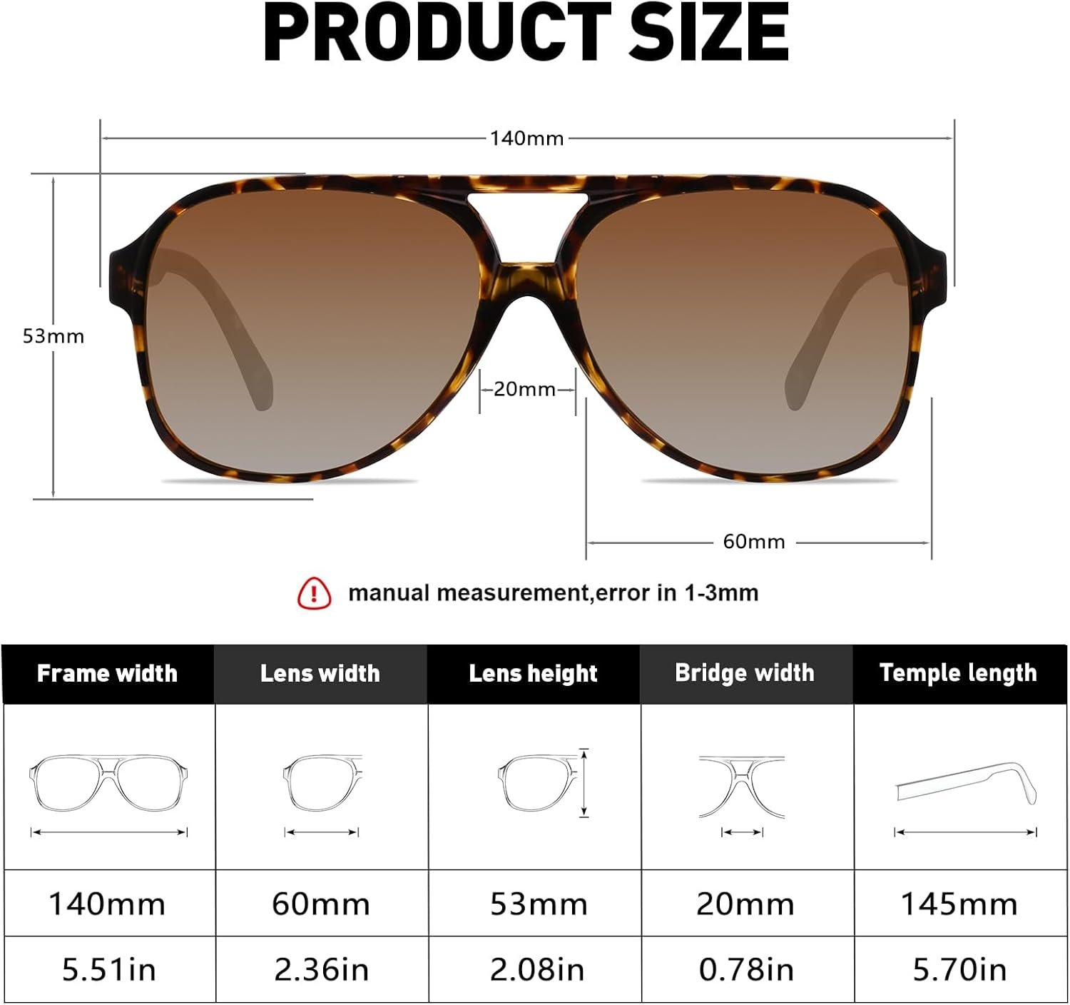 - Sizing: The large frames may not suit all face shapes.