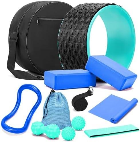 - Includes: Yoga Wheel, 2 Yoga Blocks, Stretching Band, Yoga Strap, Resistance Band, Peanut Ball, 2 Massage Balls, Yoga Ring, Wheel Bag.